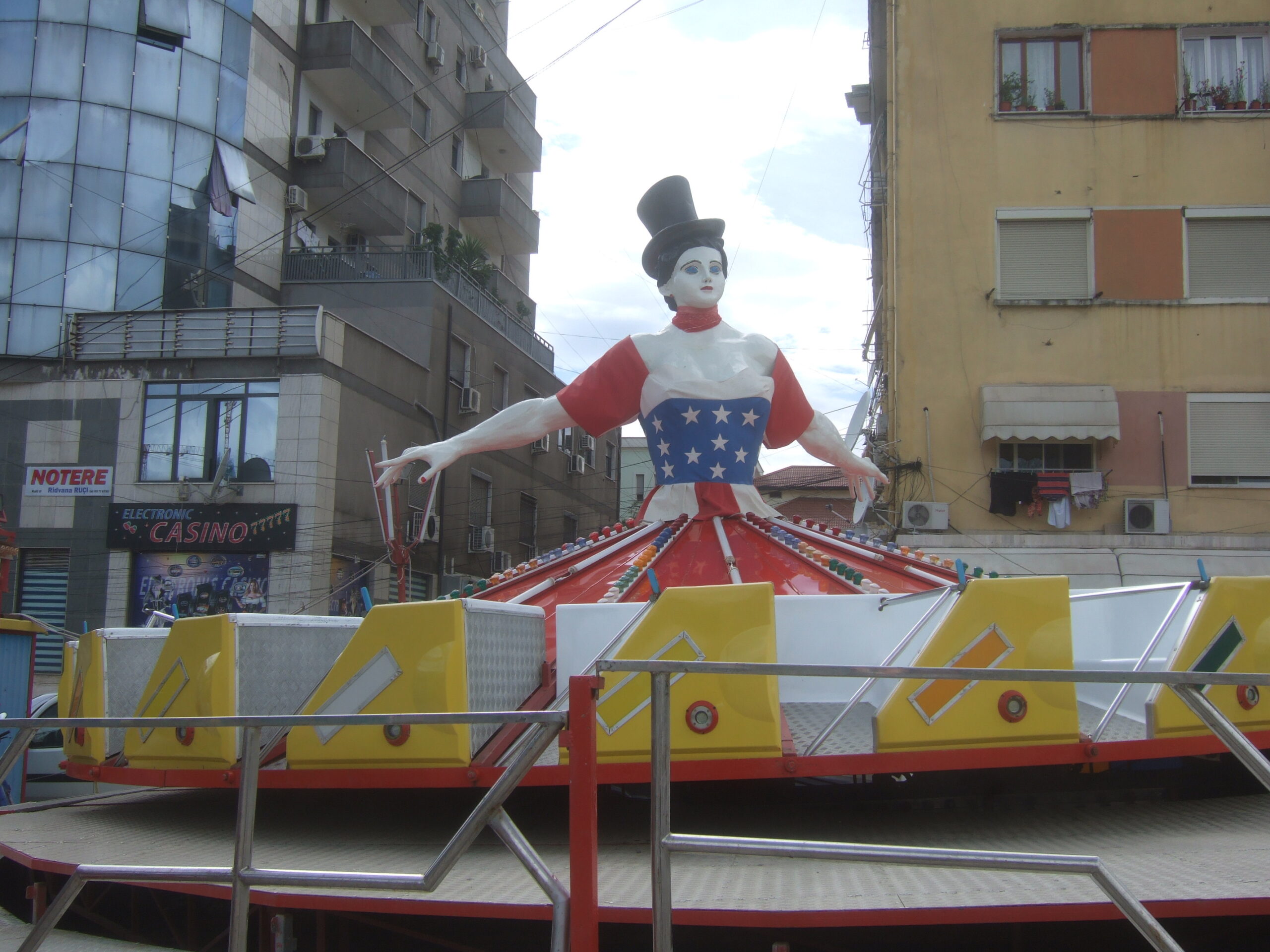 Þetta virtist smitast út í borgarsamfélagið, fólk fór að skapa nærumhverfi sitt upp á nýtt. Eitt dæmi er forljótur pýramídi sem arkítektinn dóttir Hoxha teiknaði upp í valdabrjálæði sínu. Núna nota börn og unglingar þennan risapýramída sem rennibraut. Aðaltorgið er fullt af klessubílum sem krakkar leika sér í og gamlar konur labba þar óáreittar í gegn á meðan krakkarnir klessa á bíla hvors annars, traustið er fullkomið.